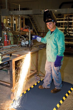 The nitrile-blended cushion is molded—not glued—to the nitrile rubber surface, preventing delamination and ensuring a longer lifespan. The surface is grease- and oil-proof, while the cushion is resistant to grease and oil as well. The edges resist cracking and curling, even in high-traffic areas or where chemicals, welding slag, and industrial wear are common.